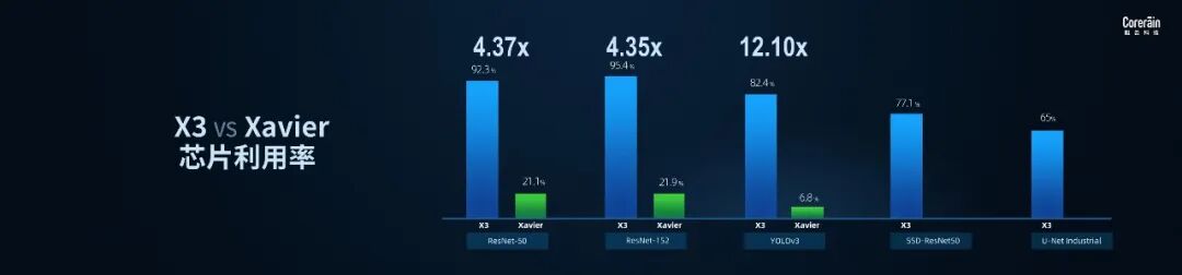 此次发布的CAISA芯片采用鲲云自研的定制数据流芯片架构CAISA 3.0,相较于上一代芯片架构,CAISA3.0在架构效率和实测性能方面有了大幅的提升,并在算子支持上更加通用,支持绝大多数神经网络模型快速实现检测、分类和语义分割部署。CAISA3.0在多引擎支持上提供了4倍更高的并行度选择,架构的可拓展性大大提高,在AI芯片内,每一个CAISA都可以同时处理AI工作负载,进一步提升了CAISA架构的性能,在峰值算力提升6倍的同时保持了高达95.4%的芯片利用率,实测性能线性提升。同时新一代CAISA架构对编译器RainBuilder的支持更加友好,软硬件协作进一步优化,在系统级别上为用户提供更好的端到端性能。