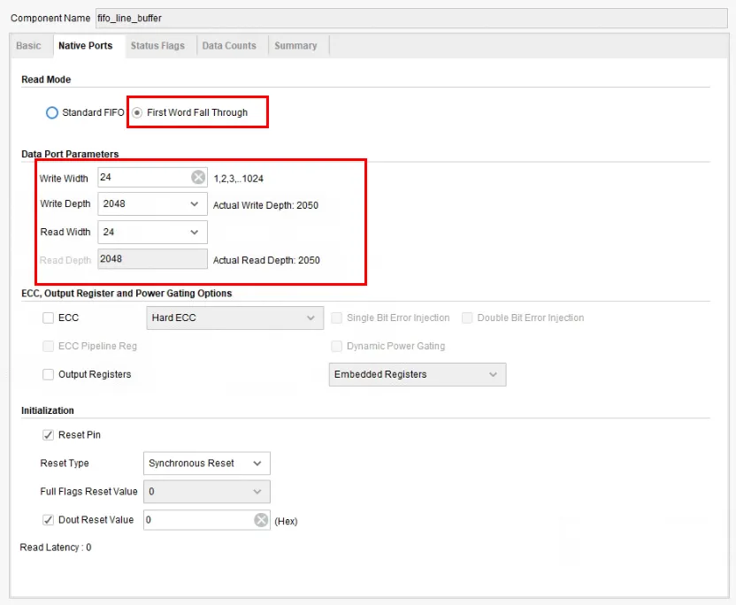 每一个行缓存fifo,都是在缓存完一行数据后,如果有新的数据输入,则同步输出一个数据出去。