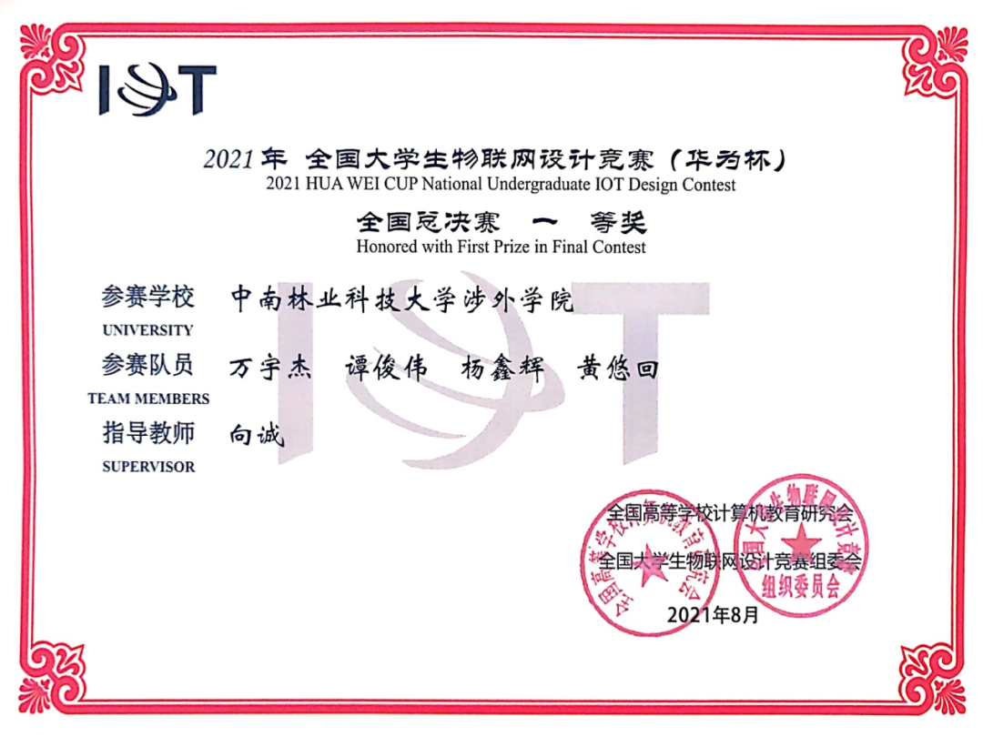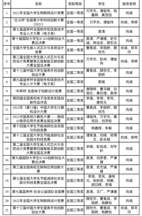 学生参加全国大学生物联网设计竞赛全国总决赛、全国大学生节能减排社会实践与科技竞赛全国总决赛多次获三等及以上奖项。