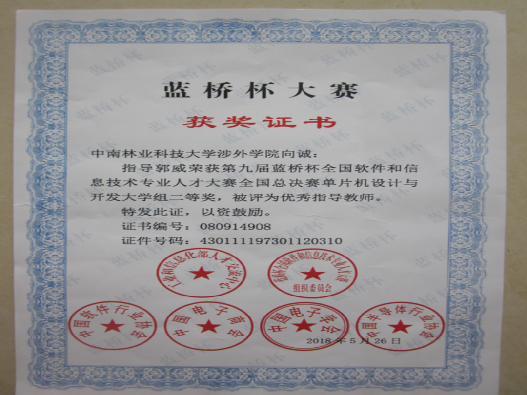 参加蓝桥杯全国软件和信息技术专业人才大赛(电子类)全国总决赛单片机设计与开发类获全国一、二等奖多项。
