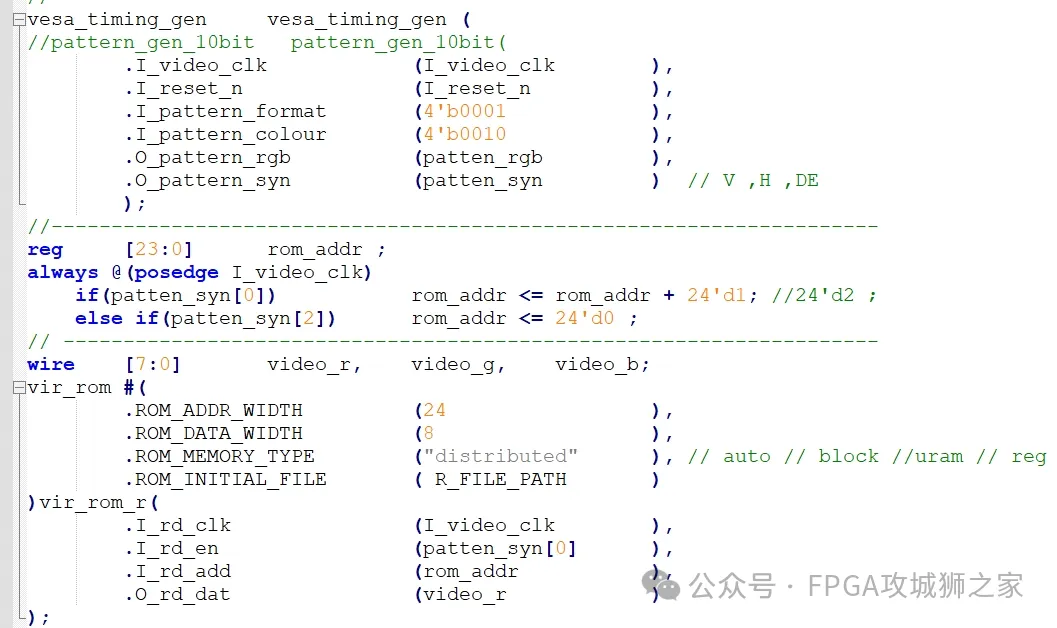 vir_rom 就是一个虚拟的rom。利用VESA视频流同步信号产生rom读地址,从而把rom中的图像数据导出来。
