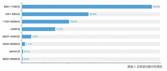 两成以上开发者月薪超过1.7万,九成在5千以上