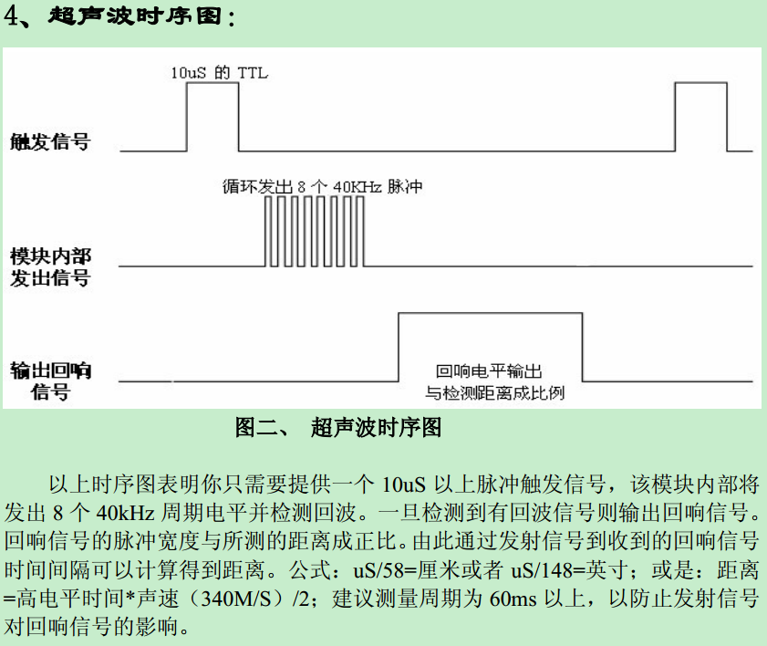2、在30ms的前10us我们将trig拉高,作为模块的启动信号,10us后的时间保持为低