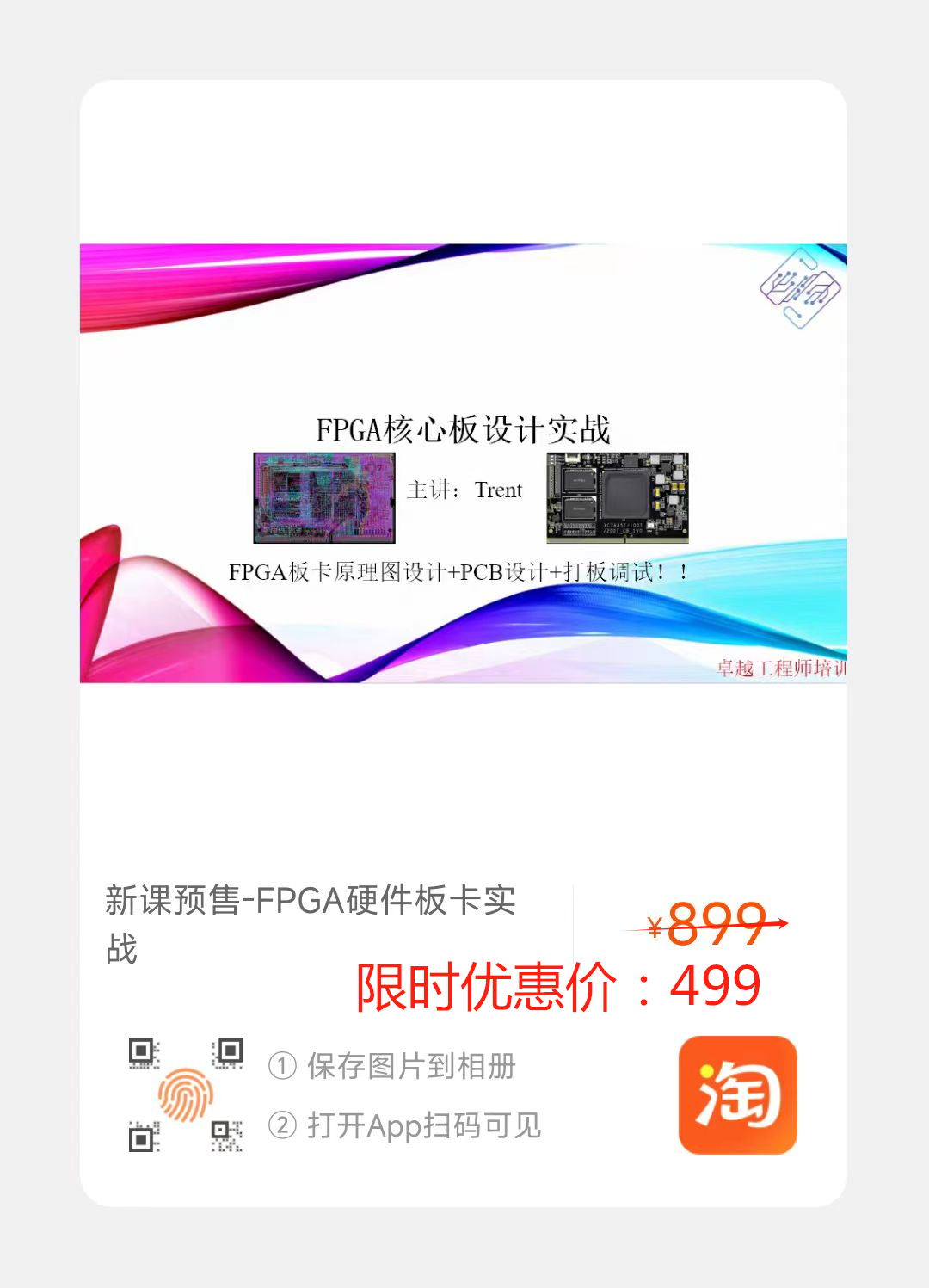 新课FPGA实战课程:原理图-PCB-打板-调试-代码验证。课程预售开始时间:7.10号;开课时间:8.16号。
