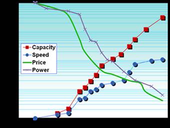 图 1:与 1988 年的赛灵思 FPGA 特征对比。价格和功耗降低一万倍。