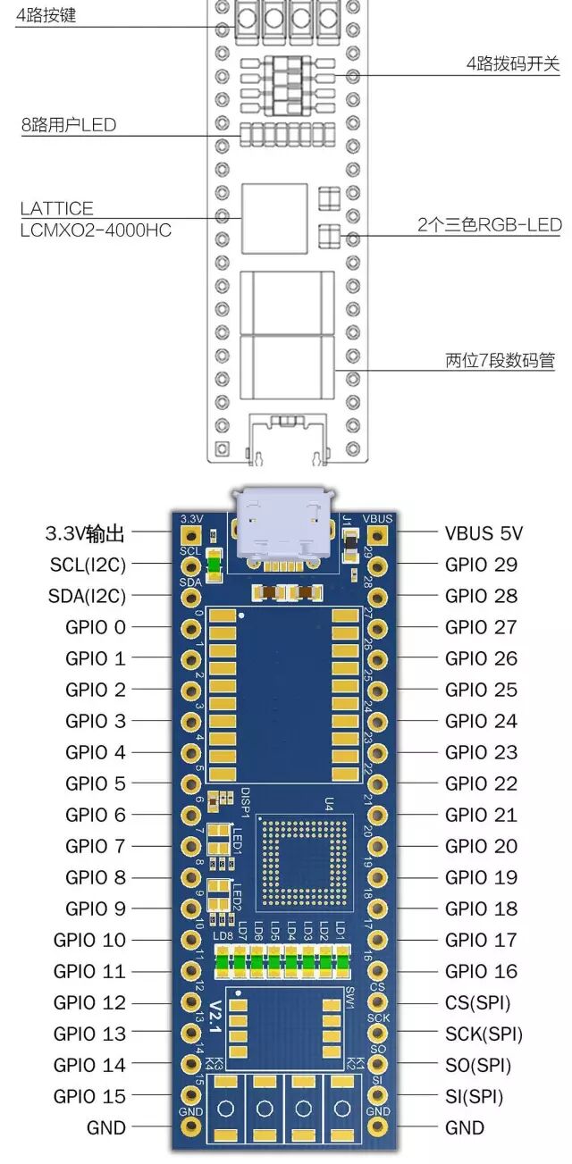 XO2-4000内部有足够的逻辑功能构成MCU中的ALU,内部的块RAM可以构成MCU需要的内部存储寄存器,另外XO2系列有硬化的SPI、I2C以及定时器功能,可以构成各种8位、32位的微处理器MCU,Lattice Diamond系统自带支持 Wishbone 总线的8位单片机MICO8 单片机内核以及32位的 MICO32 处理器内核。据说这两个内核都是来自于著名的开源硬件网站 www.opencores.org,在这个网站上可以看到各种经过工程师验证过的内核,比如8051、OpenRisc、AVR、MIPS32,有兴趣的同学可以移植到小脚丫平台上。