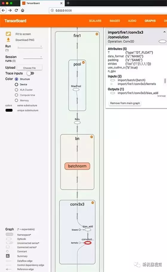 此示例应用程序的项目文件包括全套文件,从Caffe caffemodel和TensorFlow pb格式的模型开始。因此,开发人员可以探索这些模型的细节。例如,使用TensorFlow import_pb_to_tensorboard.py实用程序,开发人员可以导入Lattice提供的pb模型,以查看此示例应用程序中使用的CNN的细节(图7)。本例中,所提供的模型是由四个“Fire”模块组成的序列,每个模块包括: