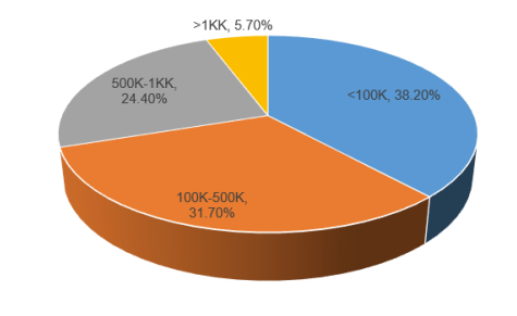 目前国内有安路科技、紫光同创、复旦微电、高云半导体、京微齐力等厂商进入FPGA行业,近年来由于美国对中国半导体的限制日益趋严,FPGA国产替代迫切需求叠加国产FPGA厂商产品快速迭代和品类扩张,目前面向500K以下容量和非先进制程市场,国内厂商已逐步实现国产替代。100K以下和100K-500K逻辑容量的FPGA需求量大,是国内FPGA龙头厂商国产替代的主要市场。根据Frost&Sullivan的数据,2019年100K以下逻辑容量的FPGA芯片中国市场份额为38.2%,100K-500K逻辑容量的FPGA芯片市场份额为31.7%,500K-1KK和>1KK分别占比24.4%和5.7%。从逻辑容量来看,100K以下和100K-500K逻辑容量的FPGA芯片是中国市场需求量最大的部分,国内厂商安路科技和紫光同创目前均已覆盖,是FPGA国产替代的主要市场。图:2019年中国各逻辑容量FPGA市场份额情况