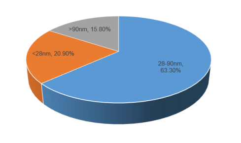 28nm以上制程占大部分市场份额,是FPGA国产替代的重要方向。从工艺制程来看,由于28nm-90nm制程FPGA在性价比和良品率方面具有优势,占据了主要的市场地位。根据Frost&Sullivan的数据,2019年28nm-90nm制程的FPGA占中国市场份额为63.3%,28nm以下制程的FPGA芯片占据20.9%的市场份额,>90nm制程的FPGA占比15.8%。由于中国在先进制程制造方面受到限制,28nm以上制程也是FPGA国产替代的重要方向。图:2019年中国各工业制程FPGA市场份额情况