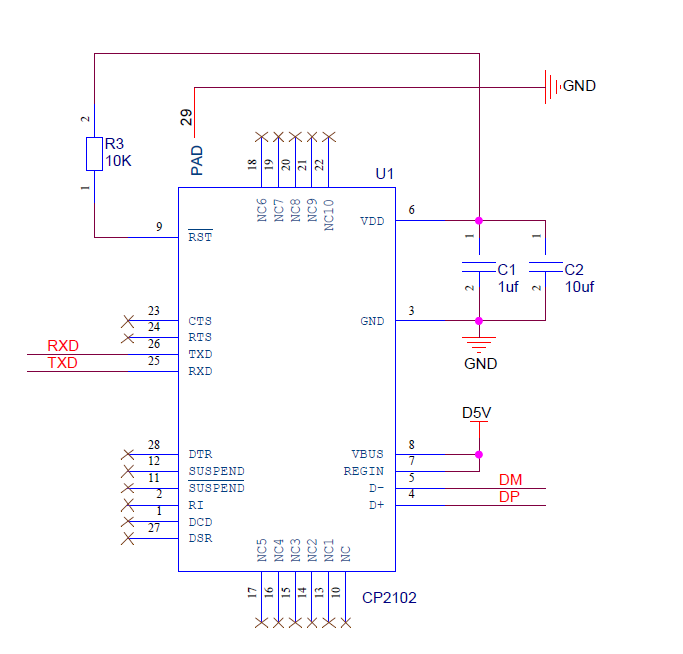 在通信双方传输数据之前,需要通过串口线进行连接,然后再传输数据,常用的串口线为DB9接口,但是由于这种接口体积大,不易携带等缺点而慢慢淘汰。我们在B04的开发板上使用到的是一个USB转串口的芯片,这样我们的MINI USB接口不仅可以给开发板供电,还可以进行串口数据传输。芯片为CP2102(USB <-->UART(LVCMOS/LVTTL)),对于开发者来说,就不需要关注电平标准了。