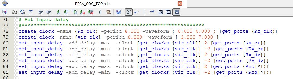 当然,我们也可以用Rx_clk作为参考来约束输入延时,但是quartus在布局布线时,以输入时钟为参考的约束不够精确,有时仍会出现时序错误。