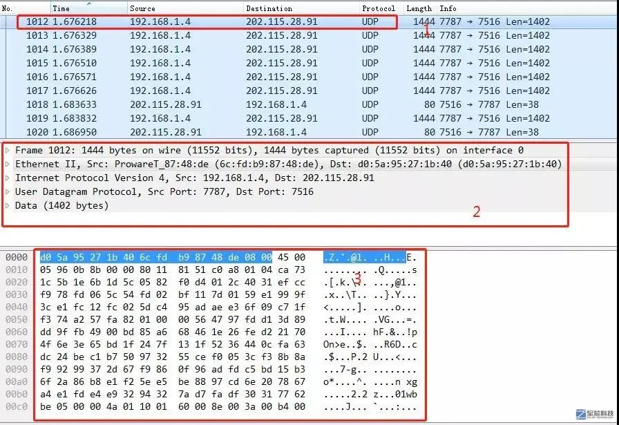 下面我们根据抓取到的一个UDP包,来给大家介绍UDP的协议