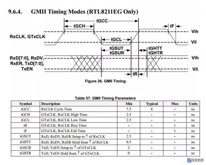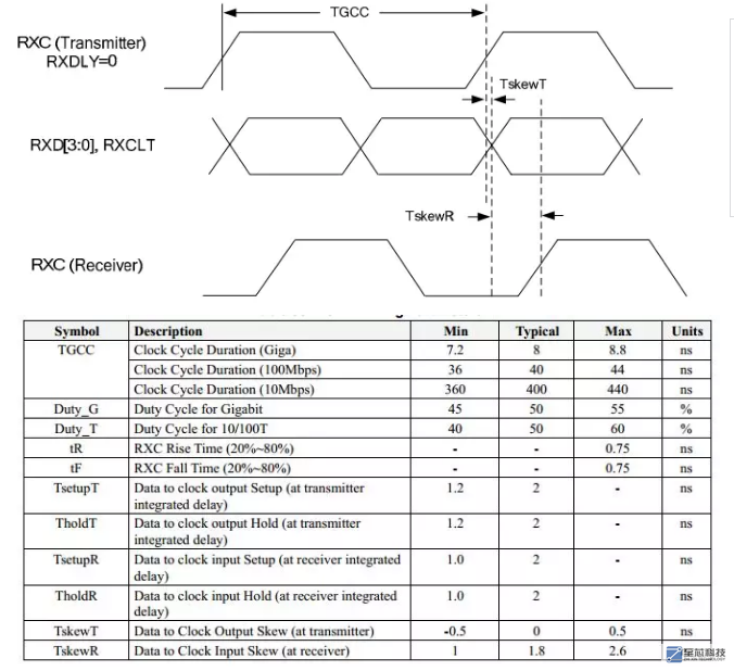 在百兆网模式下,其RXCLK的周期为40ns,也就是25M,数据端口RXD只用了4根线RXD[3:0],然后25M*4 = 100M,这样算出来,就是100M的速率了。接着再来说一下千兆网,千兆网的接口,就目前接触比较多的接口有3种,GMII,RGMII和SGMII。先说GMII,RxClk的周期为8ns,也就是125M,数据端口使用了8bit,125M*8 = 1000M,速率就是千兆网了。