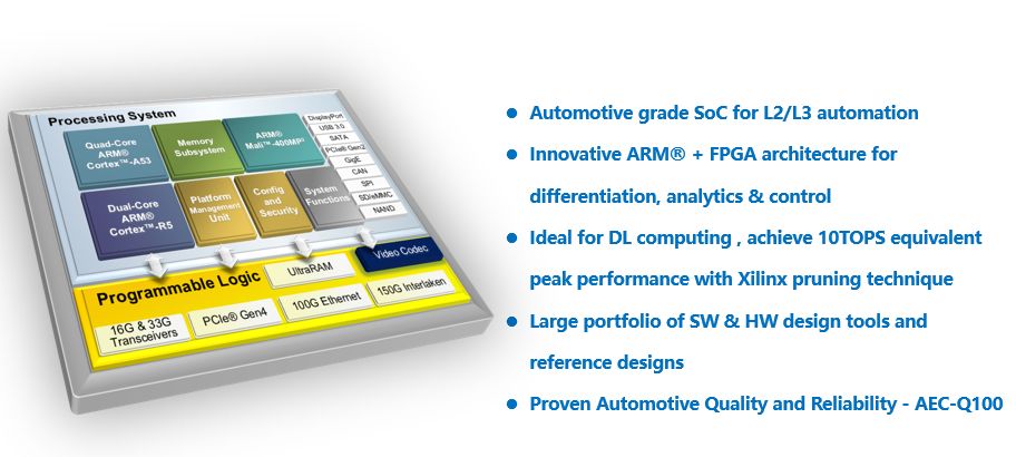 以汽车应用为例,携手东软睿驰在2019CES推出自动驾驶域控制器系统的合作,该控制器能够提供自动驾驶和自动泊车功能。这款新产品基于赛灵思汽车级的 Zynq MPSoC,配备了 SDK 和计算资源,支持汽车制造商开发自己的应用。