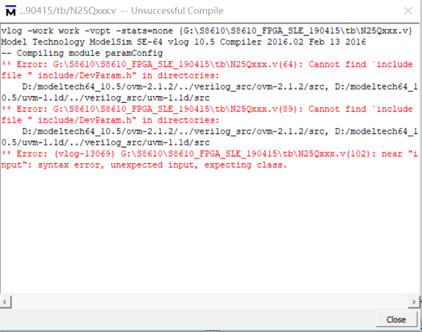 这两个原因都会造成modelsim软件在编译时,无法识别到include文件夹中的文件,从而报错。