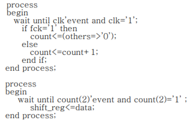processbegin wait until clk’event and clk=’1’ ;