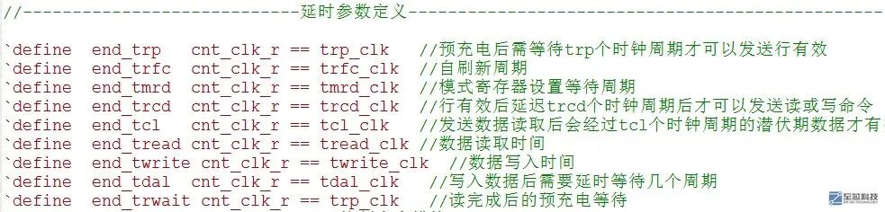 用一个宏定义,当计数器计数到相应的时间后,预充电完成参数置位 即end_trp 置位,下面的用法也是一样,即当初始化状态机进入预充电状态i_pre时,计数器开启,开始计数,计数完成,也就是预充电结束的时候,计数器复位,这个复位的控制,可以用case语句来检测初始化状态机的状态,在相应的状态给予相应的复位与置位