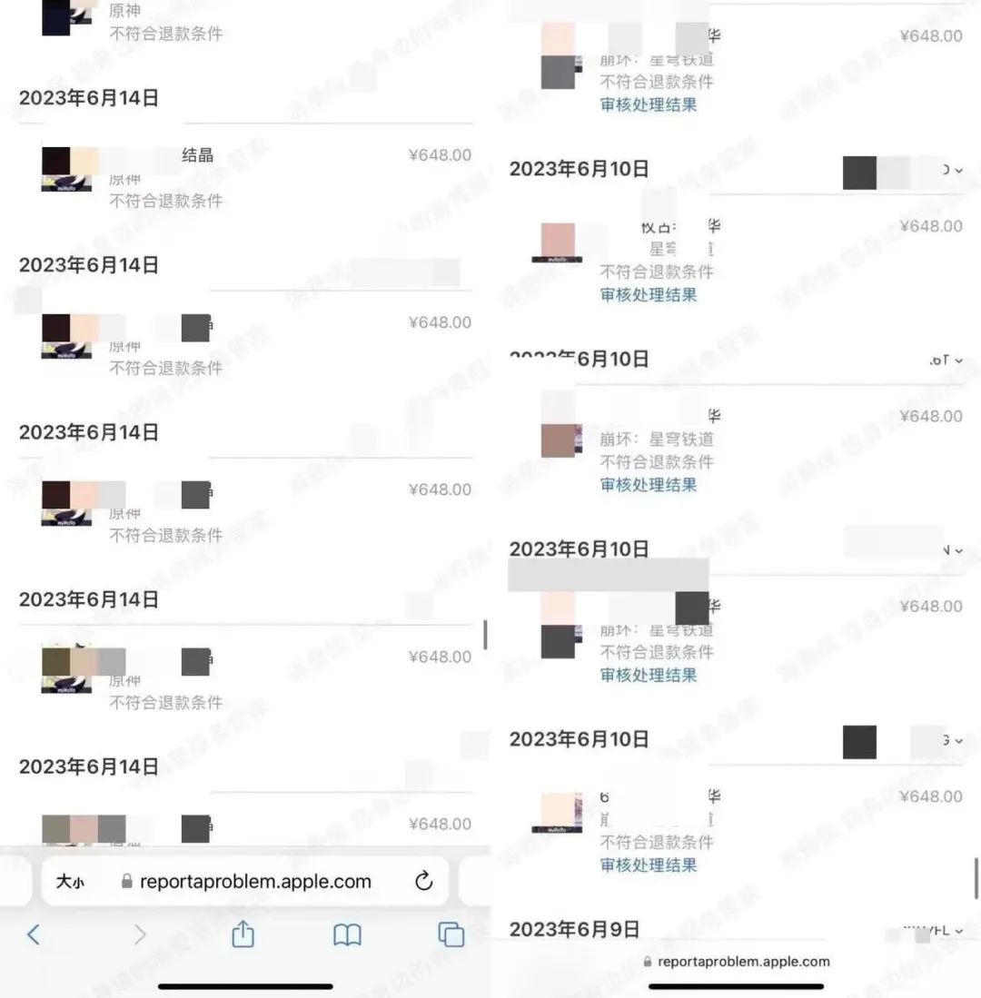 张女士于2023年7月登录米哈游“成长关爱平台”申请退款,按平台要求提供了所有资料。之后张女士接到客服电话,被告知“使用苹果手机支付只能退70%,因为苹果抽成30%”。张女士妥协了只能退款70%的条件,和平台客服预约了电话回访。