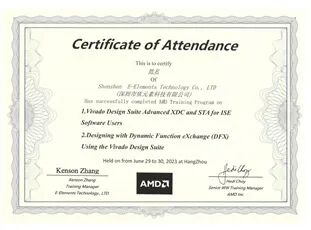 培训证书培训结束,考核成绩合格者,颁发AMD官方授权培训FPGA工程师证书。