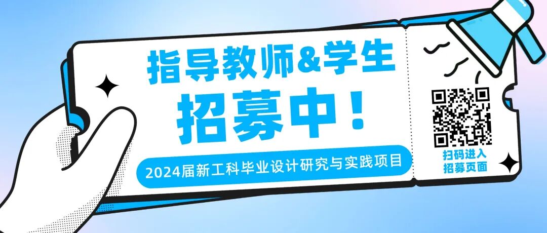 目前,2024届新工科毕设项目选题阶段已结束,项目组指导教师与选题学生正在招募中!扫描下方图片中二维码跳转查看项目组招募通知!