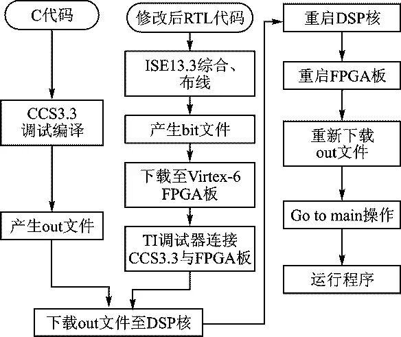 图3 基于DSP的SoC系统的FPGA验证流程图