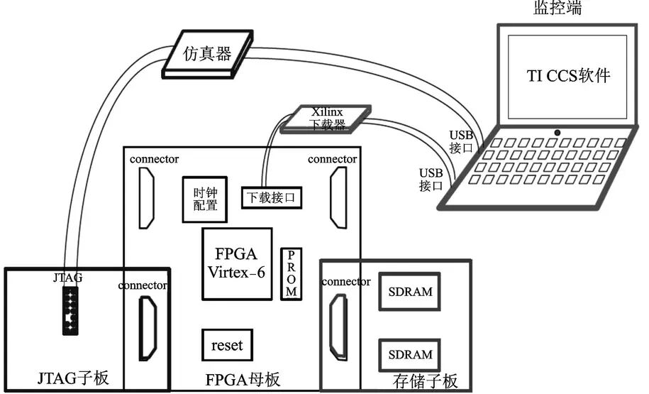 其中包括FPGA原型验证需要的Xilinx Virtex6芯片的FPGA验证母板、支持下载bit文件及验证调试过程中需要的Xilinx FPGA编程器及下载线、能够支持正确下载DSP激励测试程序的DSPJTAG调试子板、支持DSP芯片的仿真器、安装有TI CCS软件和 ISE13.3,以软件及支持DSP芯片驱动的计算机。